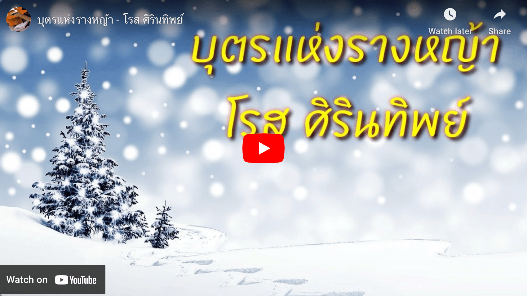 ในวันคริสต์มาสนี้ จงระลึกว่าริบบิ้นและของขวัญทั้งหมดในโลกนี้ ไม่มีวันเทียบเท่าสิ่งที่พระองค์ทรงกระทำ พระองค์เสด็จมาเป็นมนุษย์ธรรมดา ที่แบกรับการละเมิดของเรา และสิ้นพระชนม์บนกางเขนอันน่าอัปยศนั้น ดังที่บทเพลงอันไพเราะนี้ ของ คุณโรส ศิรินทิพย์ “บุตรแห่งรางหญ้า”