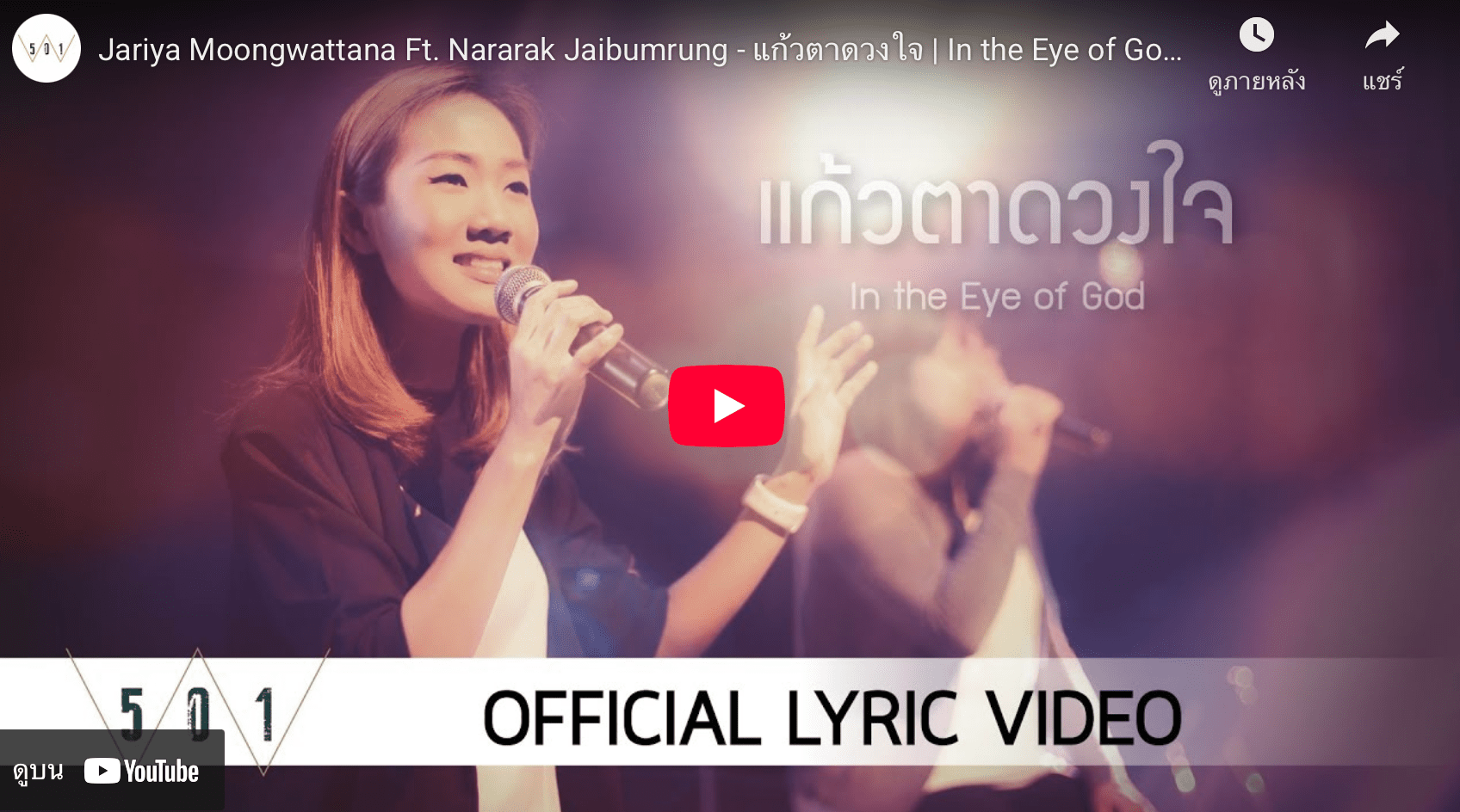 ฉันอยากจะทิ้งท้ายข้อความวันนี้ด้วยเนื้อเพลงจาก W501 ที่จะช่วยย้ำเตือนคุณว่า พระเจ้าทรงรักคุณ คุณคือแก้วตาดวงใจของพระองค์ และคุณสามารถเข้ามาพักสงบในอ้อมพระหัตถ์อันแสนอบอุ่นของพระองค์ได้